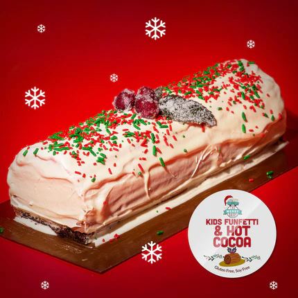 For kids, but really, there ain't nothin' stoppin' no one from orderin' one for the adult holiday table too! Funfetti and Hot Cocoa ice cream, in a Yule Log that all your woodland creatures will love!